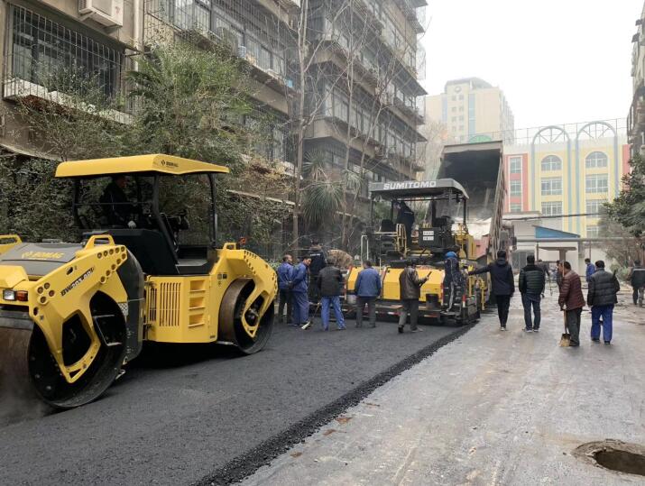 郑州小区铺设沥青道路 碾压